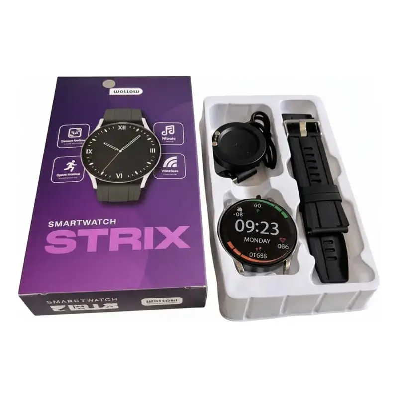 El Strix de Wolow es un smartwatch de diseño táctico pensado para quienes buscan funcionalidad, durabilidad y un look fuerte y moderno en su día a día. Su pantalla de 1.3" ofrece una visualización clara y cómoda de tu información, mientras que su interfaz táctil intuitiva permite navegar fácilmente entre sus funciones sin complicaciones.