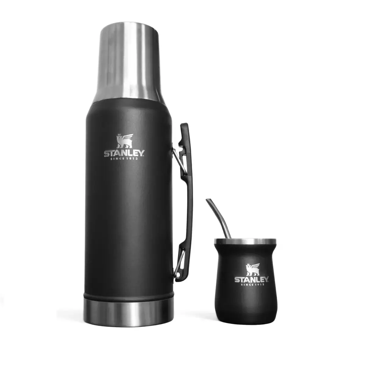 El Termo Messi 1.2L con Mate Stanley está pensado para quienes viven el mate como un ritual. Está hecho de acero inoxidable y gracias a su doble pared térmica, ayuda a conservar la temperatura de las bebidas por un tiempo prolongado.